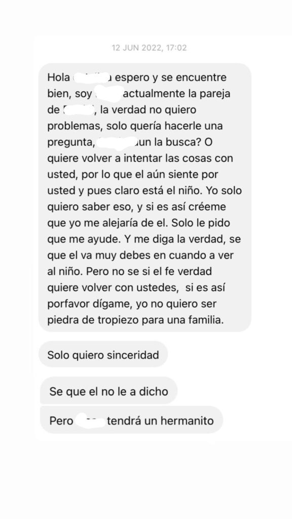 Duramos separados 3 meses pero él me llamo rogando pidiendo perdón, yo volví otra vez con él, a los meses quede en embarazo, la primera reacción de él fue decirme que abortara pero yo decidí seguir, en medio del embarazo me descubrieron cáncer de tiroides, pasaron los 9 meses donde estuvimos “juntos” pero justo el día del parto me escribió una mujer desconocida por Facebook diciéndome “yo soy la nueva mujer de… vamos a tener un hijo…” lo confronte y me dijo “el niño va a tener un hermanito”, evidentemente yo tuve a mi hijo, él es mi razón de ser, el motivo por el que lucho todos los días y también la razón por la que reaccione por fin dejando a ese desgraciado.