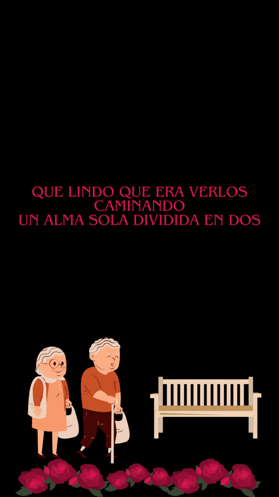 Hace unos 6 meses a Fernando le descubrieron un cáncer muy agresivo que se lo ha ido comiendo en vida, Clara lo ha acompañado como su bastón, sus hijas han estado luchando contra la EPS para que su tratamiento sea el mejor, pero hace unos días Fernando descanso de esa tortura llamada cancer, los vecinos aún esperan verlos como todos los días en el parque pero ahora Clara se sienta sola en la misma banca con una foto de Fernando pensando lo afortunado que fueron.
