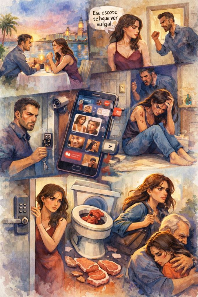 En ese momento mi mundo se cayó porque era lo único que yo le defendía: que, por lo menos, era un hombre fiel. Justo entonces comencé a conectar todo. Cuando lo confronté, su reacción fue otro golpe por revisarle el celular, pero esta vez no paró con un solo golpe. Fueron muchos, hasta que perdí la consciencia. Cuando desperté, estaba en la cama con un ramo de flores al lado y un collar de oro con diamantes. No pude hablar por unos días debido a la inflamación en mi rostro y él actuó como si nada hubiera pasado. Me dijo que mi celular se había caído y dañado, y que últimamente la seguridad en la ciudad estaba empeorando, así que mandó colocar cámaras y una chapa electrónica con clave; clave que solo él tenía.